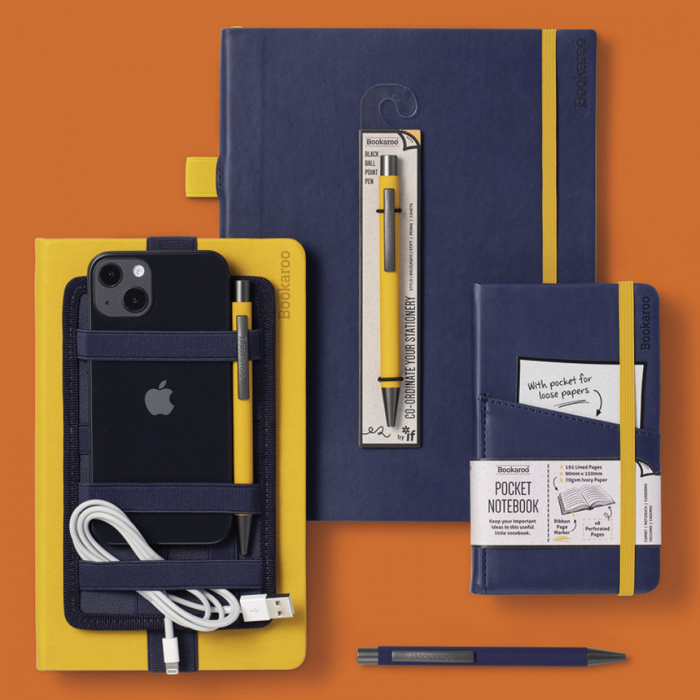 Sometimes you just need a bit more space. Sometimes you feel like WRITING IN CAPITALS or scribbling in your worst handwriting. Our Bigger Things Notebook is a very pleasing size to hold, carry and use, with lined pages for you to stick to (or completely ignore) and a super soft and bendy faux leather cover. It has all the usual useful Bookaroo notebook features, but for this model, we have added a properly sized pocket in the back for those random bits of paper you need to keep safe and a pen loop in a very convenient place. So many possibilities! Start a new business. Invent something. Write a book. Do a Ph.D. Think BIG.