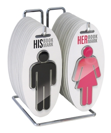 Stainless steelGlossy resin finishArms clip onto the bookEtched male and female symbols on the reverseOne His and one Her design