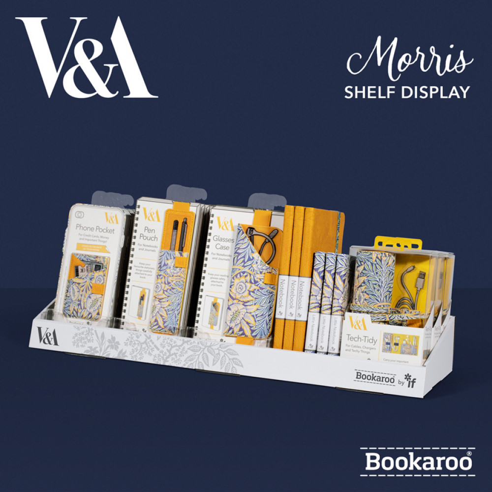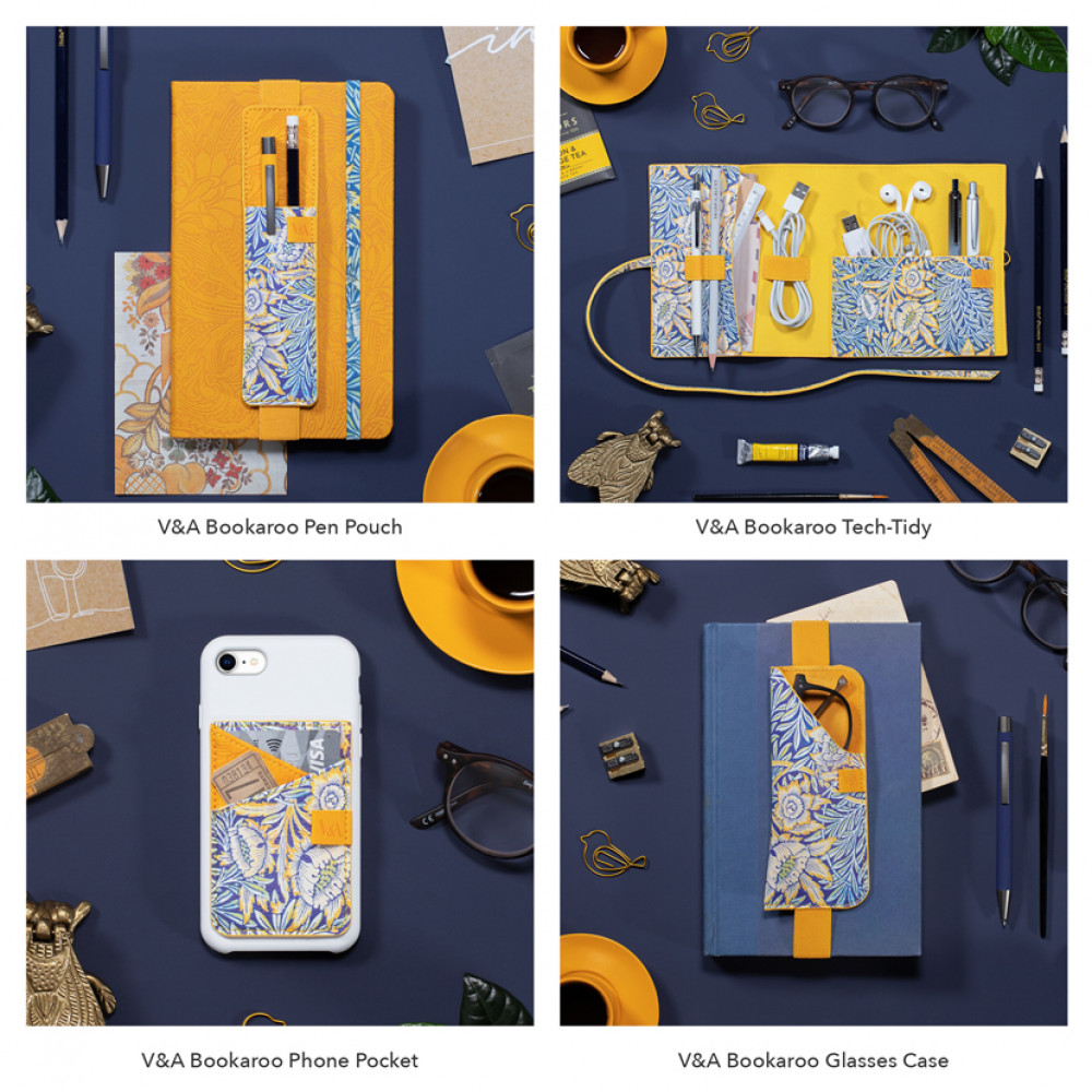 Working In collaboration with the V&A, we have carefully selected this William Morris ‘Tulip and Willow’ design from the museum’s holdings of textile and wallpaper design due to its broad appeal and for its on-trend navy and mustard colorway. We have then skilfully applied this to six of our best-selling Bookaroo lifestyle and stationery products, creating a brand new delightful collection to enjoy.