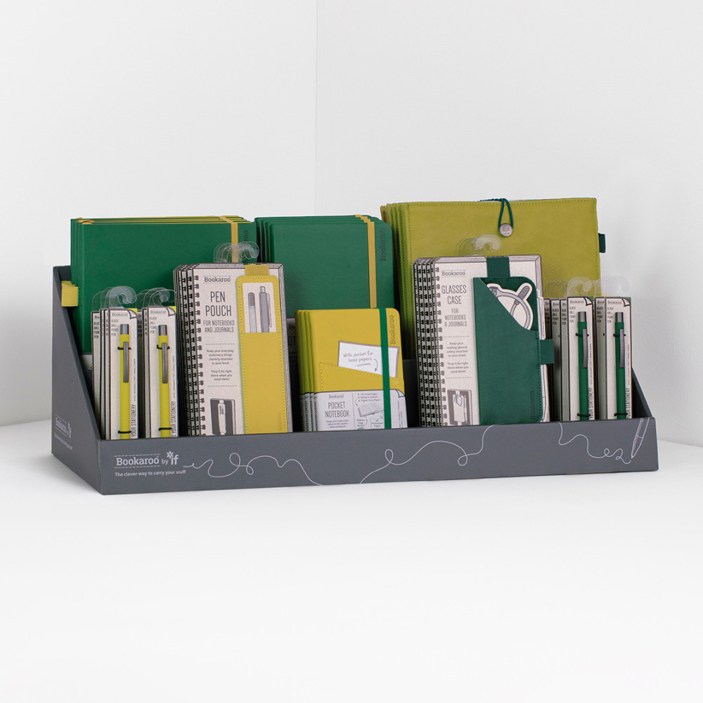 Just for you, we have taken our best selling Bookaroo products (added some absolutely brilliant brand new ones) and put them together in complementary color sets to make it easier for you to buy and hopefully encourage your customers to make multiple ‘mix & match’ purchases. In eye catching Forest Green and Chartreuse this makes a fabulous and impactful range perfect to invest in for all year round giving. With lots of different merchandising options available too!