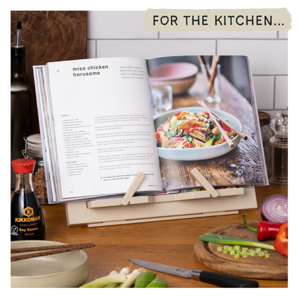 A clever and colorful way to hold bigger books - and tablets - in the kitchen, study or office. Due to popular demand we have relaunched this evergreen product in some lovely on-trend colors (including a green!) chosen to be aesthetically pleasing in your home. Whilst we were at it, we decided to re-imagine the packaging too, getting rid of the plastic box and replacing it with a very giftable and attractive cardboard display box.