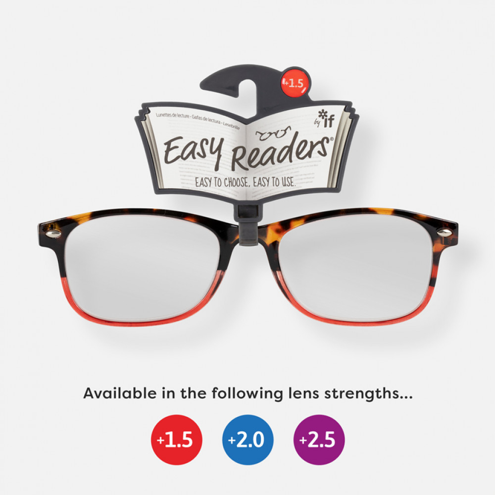 On-trend high-gloss tortoiseshell acrylic frames with a bright red accent colourAvailable in 3 strengthsSupplied on a ‘retail ready’ display hookQuality tested to all UK, EU and US standardsSprung hinge armsBuy this style only, or as part of an Easy Reader program