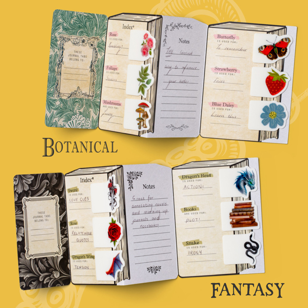 Four themed packs each with 10 of each of 6 different themes - Vintage, Botanical, Good vibes and FantasyGreat unique gift or self purchase for students, book lovers and the discerning journal writerGood quality thick tabs that won't damage your pages with good quality printClever packaging designed to stand on your desk and use as referenceBuy in 6s per style, or as an assorted starter pack of 24 in a FREE attractive counter display