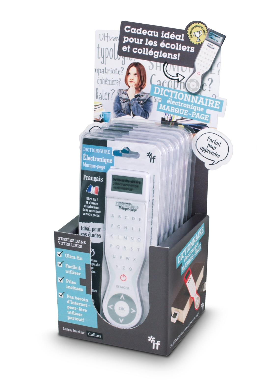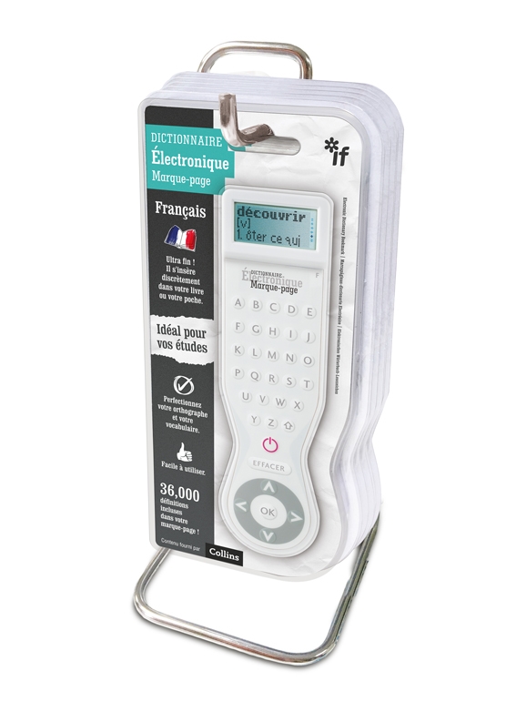 French language version. Incredibly slim, this easy-to-use, award-winning dictionary has access to thousands of word definitions to help you look up and search as you read. At just 2.5mm thin, you can also use it to bookmark your page! Just switch it on, type in your word, and press OK to search. This product is available in four different language variants.