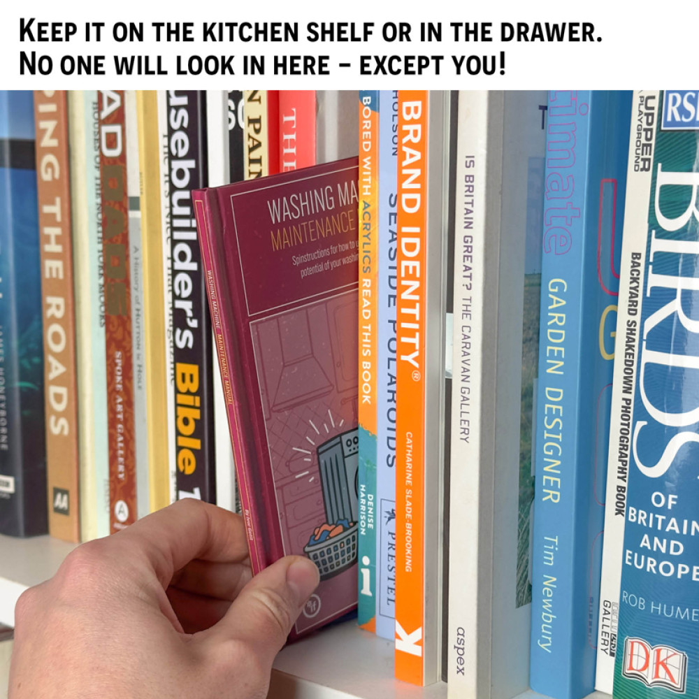Keep it on the kitchen shelf or in the drawer. No one will look in here - except you!Cover to cover written with slightly amusing or tongue in cheek hints and tips on using a washing machineHard back in traditional 'manual' style. Using brown kraft paper which helps to prevent any show throughWith little amusing 'cues' on the cover that only you would pick upA brilliant gift for anyone with passwords to keep safe - so literally anyone. Part of the Journals by IF range