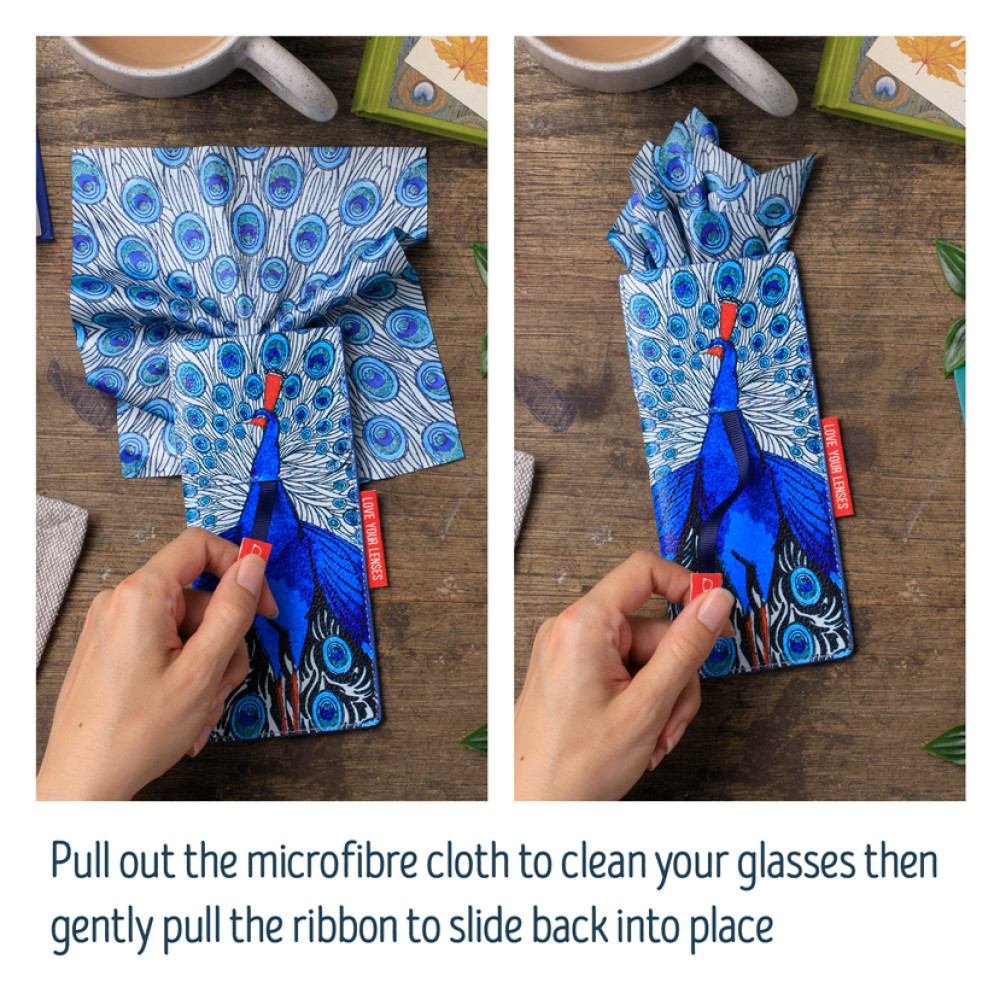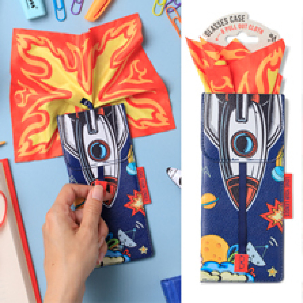 A handbag or desktop talking point, these completely unique, lined glasses sleeves each feature a bold and brilliant graphic image, ingeniously incorporating a printed microfibre cloth. Got a smudge? Remove your glasses from the sleeve, pull the cloth from its pocket and clean. Gently pull the ribbon and the cloth will slide back into place. With six very different designs to choose from they a special gift for absolutely anyone who wears glasses from age 5 to 95!