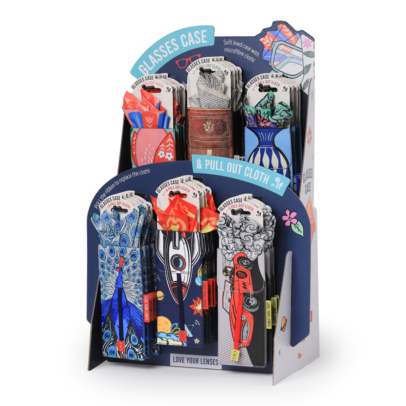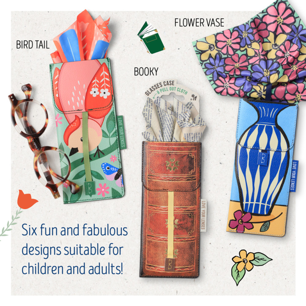 Unique soft lined printed faux leather glasses sleevesWith 18 x 16cm printed microfibre cleaning cloths attachedDesigned to fit most size and shapes of glassesSix fun and fabulous designs with a very wide appeal for children and adults