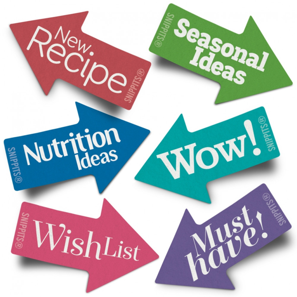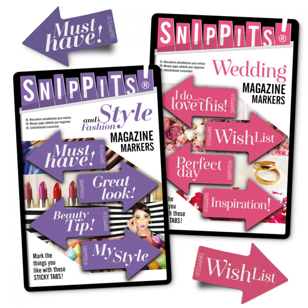 Themed sticky tabs for projects, shopping, ideas, hints, and tips! Whenever you find something you like in your magazine have Snippits® at hand to catch the moment and mark the page. Available in 6 popular themes, these self-adhesive arrow markers will help you keep track of the good things in life.