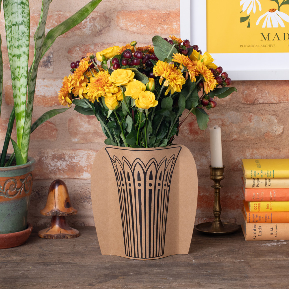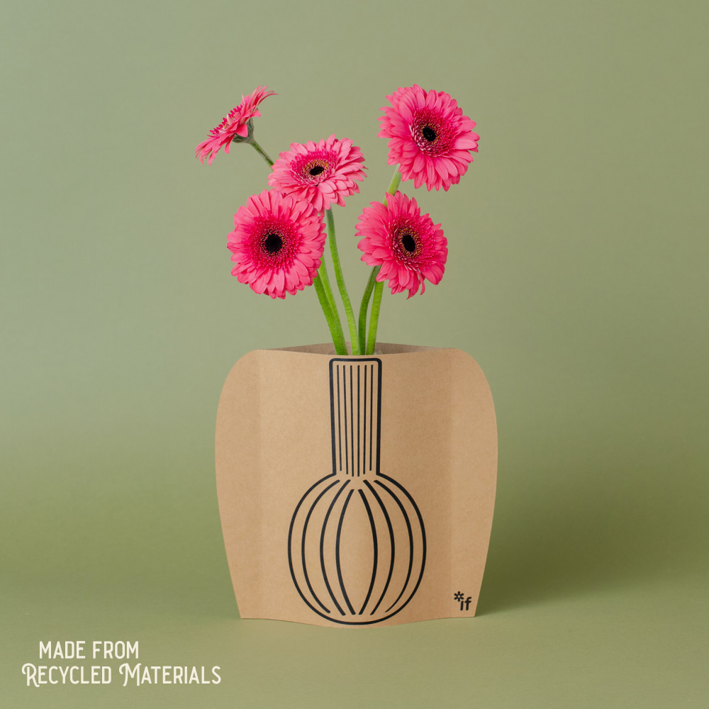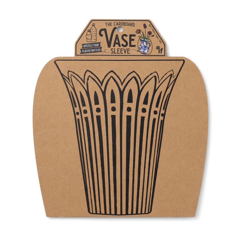 It is just that - a sleeve that fits over your empty plastic bottles and instantly transforms them into really cool vases to display your flowers. Generously we have given you one design on each side, so you can spin the sleeve and ring the changes! Simply choose your bottle - anything from a small 250ml water bottle with narrow neck (maybe for a single red rose?) to a 2 litre pop bottle cut down to give a wider neck for a serious bouquet! Made from recycled material and recyclable itself this is a lovely sustainable postable present. Great for garden centres, florists and stylish gift & interior stores.