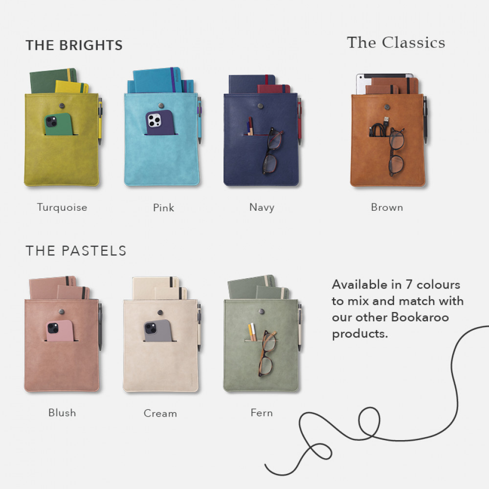 Holds either a chunky novel or a few smaller items...perhaps a Bookaroo A5 & A6 notebook, a small iPad, matching pen, and even a little novelWith neat elasticated fastener to keep your things safeColor co-ordinates with other Bookaroo productsSoft & supple good quality PU and luxury velour lining with high perceived valueGreat for work, home, college or a project!