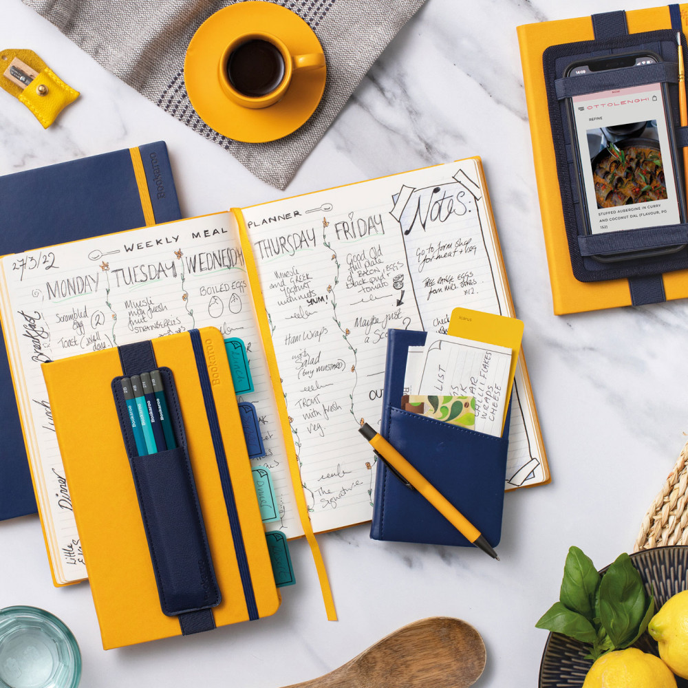 Clever co-ordinated stationery in dramatic Navy & Yellow