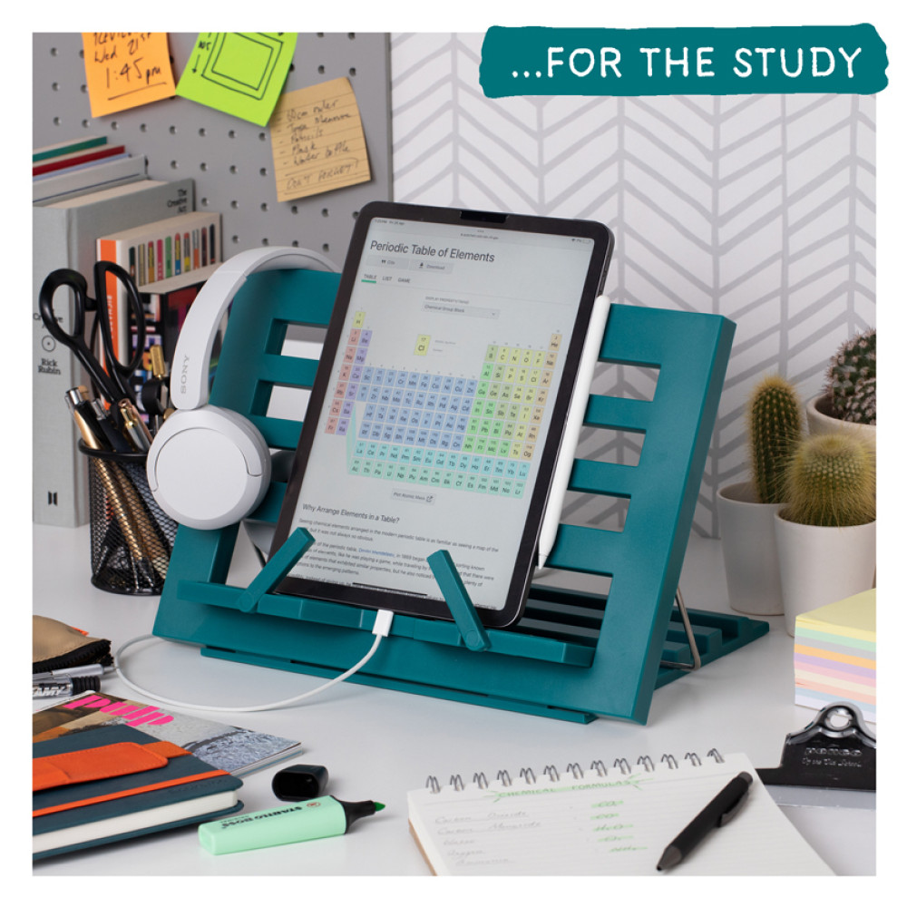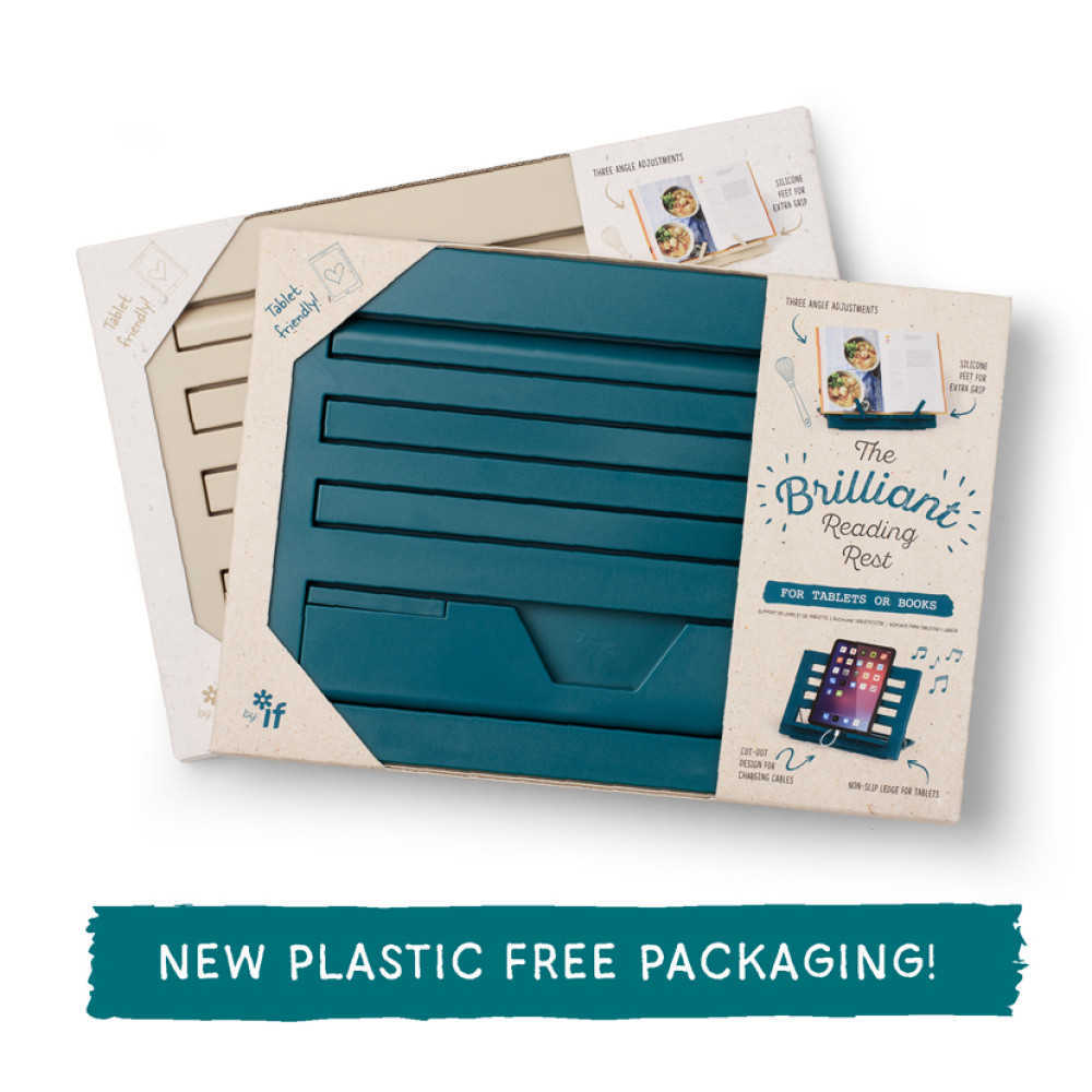 A clever and colorful way to hold bigger books - and tablets - in the kitchen, study or office. Due to popular demand we have relaunched this evergreen product in some lovely on-trend colors (including a green!) chosen to be aesthetically pleasing in your home. Whilst we were at it, we decided to re-imagine the packaging too, getting rid of the plastic box and replacing it with a very giftable and attractive cardboard display box.