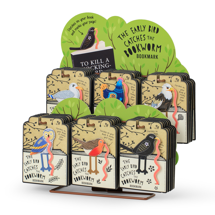 For bookworms and bird lovers alike, these 'Folk' style padded faux leather little birds have clever comedy legs that work as a clip. "Perch" the legs onto a page or two at the back of your book and use the worm as a dangly page marker. What a lovely way to keep your page? Perfect gifts for readers (early or late). Sold in beautifully designed packaging and displayed on a super attractive tree Point of Sale. Six gorgeous and diverse birds to choose from. What a 'tweat"!