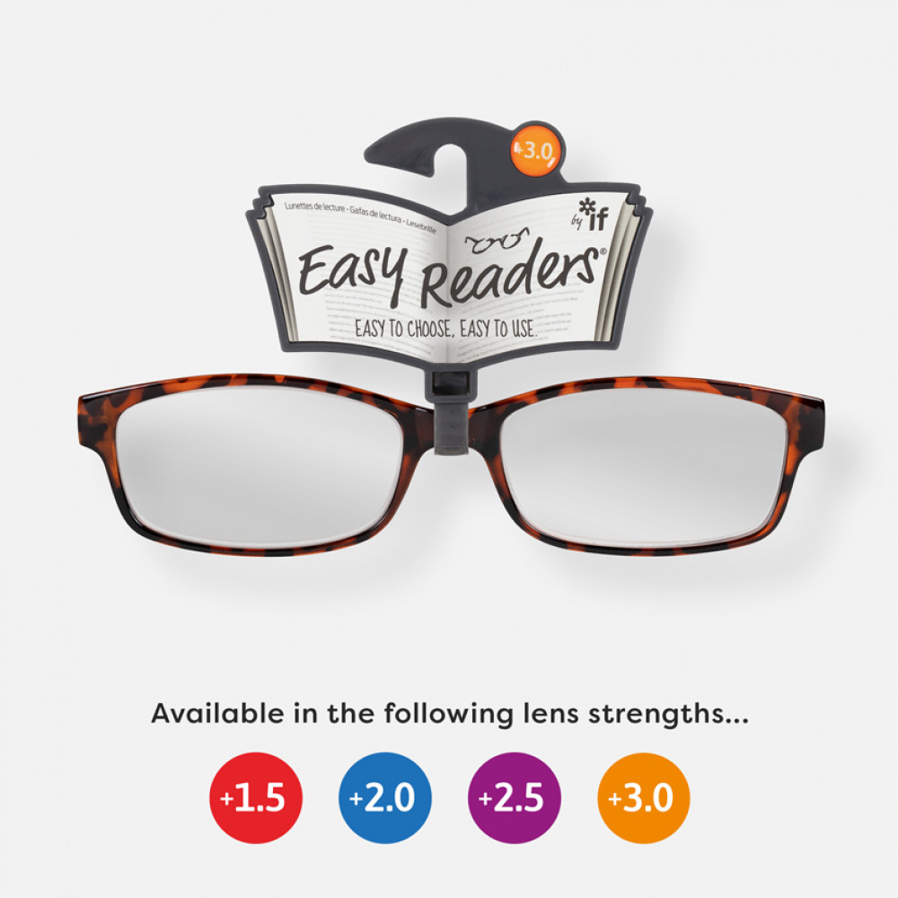 Smart and versatile midi sized acrylic frame shape in gloss finish tortoiseshellAvailable in 4 strengthsSupplied on a ‘retail ready’ display hookQuality tested to all UK, EU and US standardsSprung hinge armsBuy this style only, or as part of an Easy Reader program