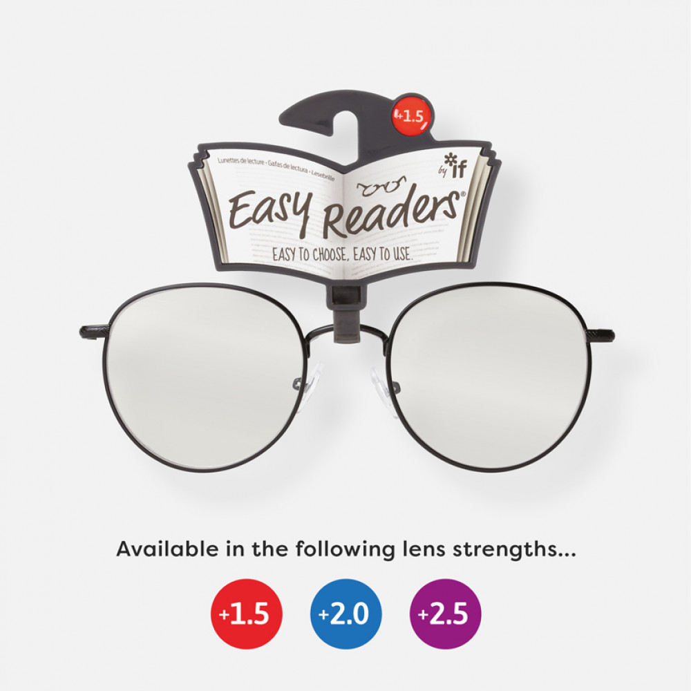 Round Black wire frames with comfort nose padsAvailable in 3 strengthsSupplied on a ‘retail ready’ display hookQuality tested to all UK, EU and US standardsSprung hinge armsBuy this style only, or as part of an Easy Reader program