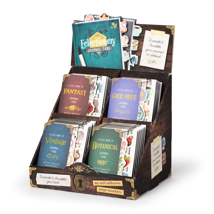 Four themed packs each with 10 of each of 6 different themes - Vintage, Botanical, Good vibes and FantasyGreat unique gift or self purchase for students, book lovers and the discerning journal writerGood quality thick tabs that won't damage your pages with good quality printClever packaging designed to stand on your desk and use as referenceBuy in 6s per style, or as an assorted starter pack of 24 in a FREE attractive counter display