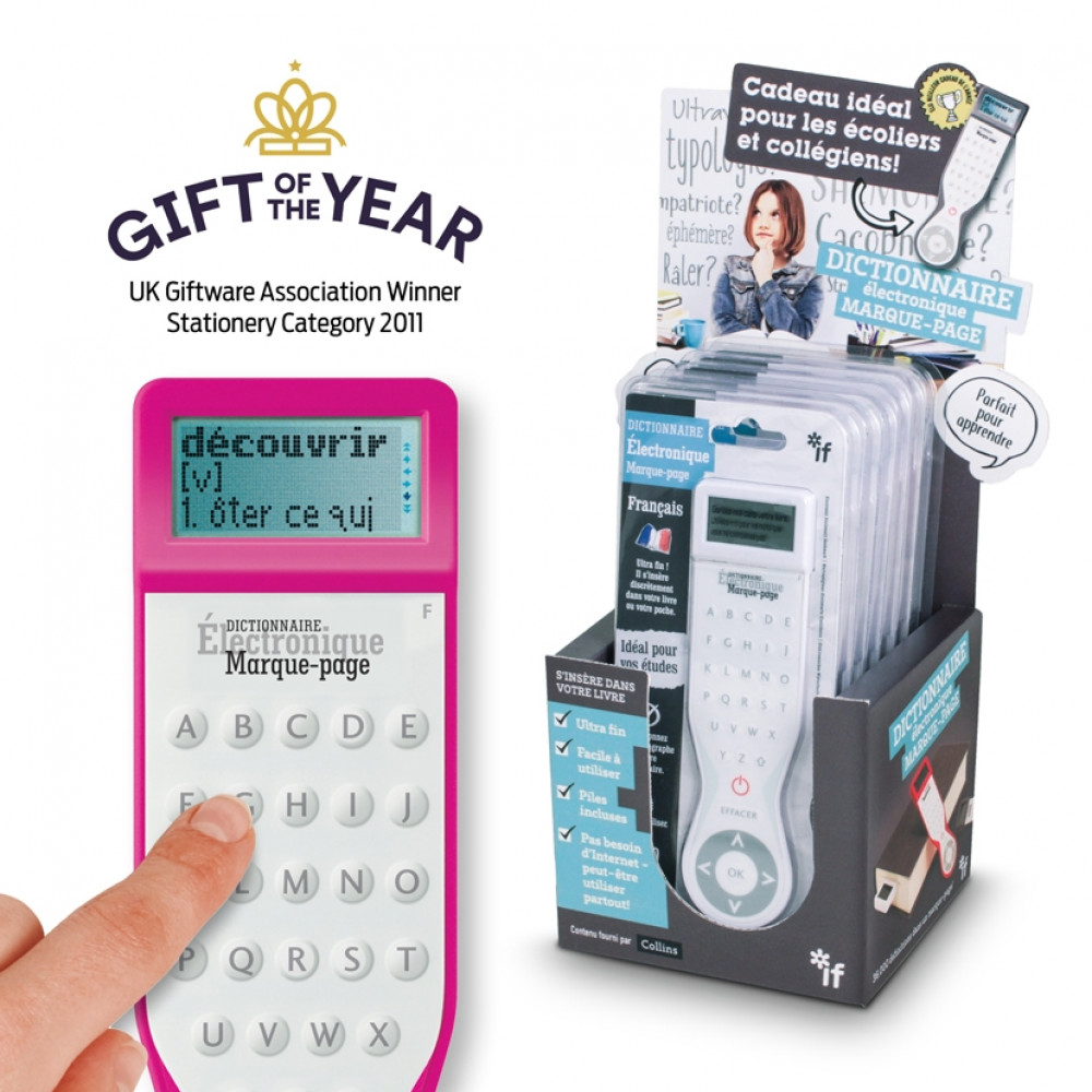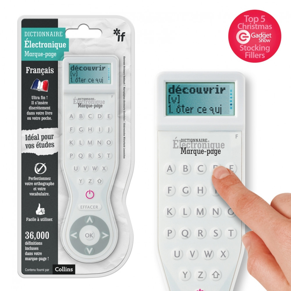French language version. Incredibly slim, this easy-to-use, award-winning dictionary has access to thousands of word definitions to help you look up and search as you read. At just 2.5mm thin, you can also use it to bookmark your page! Just switch it on, type in your word, and press OK to search. This product is available in four different language variants.