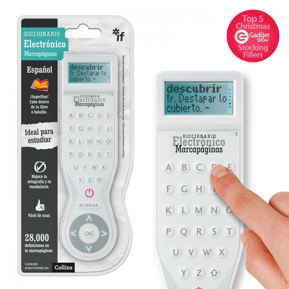 Spanish language version. After English, Spanish is the second most widely spoken language. Our award-winning, easy-to-use electronic dictionary puts thousands of word definitions in the palm of your hand - and with such a slim, ergonomic casing, you can even use it to bookmark your page as you read. This product is available in four different language variants.