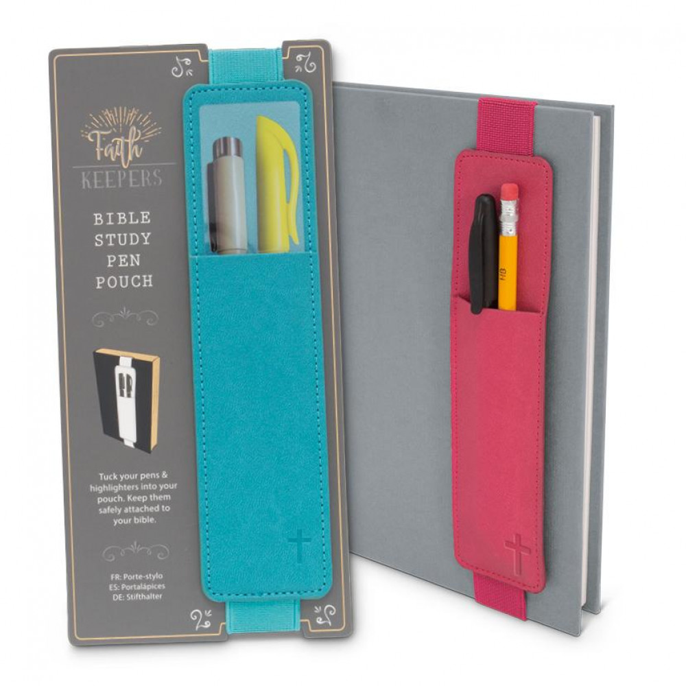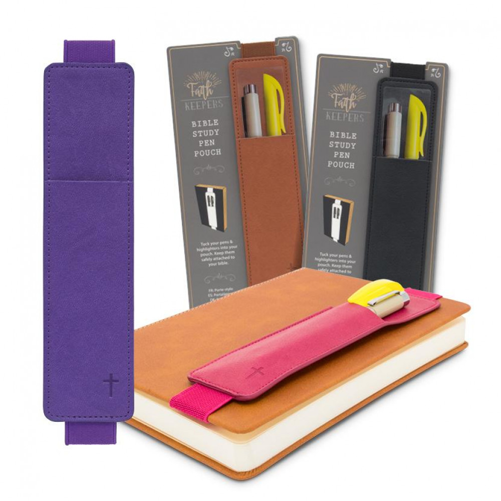 A very handy little pouch to fit your bible, book, or notebook that will guarantee your highlighters or pens will be just where you need them when you need them! Brilliant for bible study and perfect for people who don’t like to lose things. Loop the elastic around the cover and you're good to go!