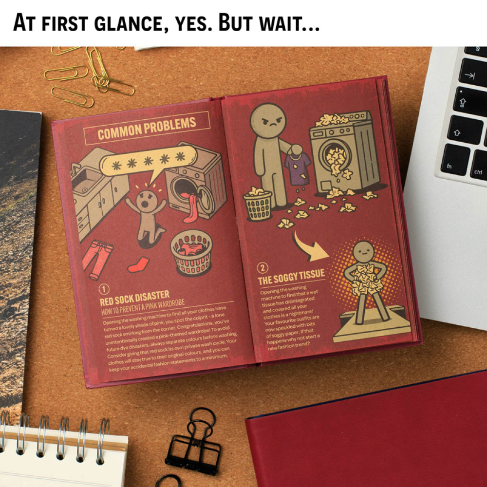 Keep it on the kitchen shelf or in the drawer. No one will look in here - except you!Cover to cover written with slightly amusing or tongue in cheek hints and tips on using a washing machineHard back in traditional 'manual' style. Using brown kraft paper which helps to prevent any show throughWith little amusing 'cues' on the cover that only you would pick upA brilliant gift for anyone with passwords to keep safe - so literally anyone. Part of the Journals by IF range