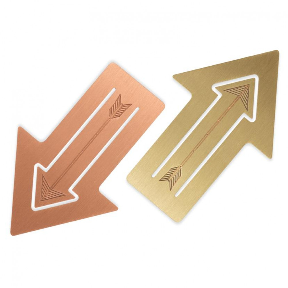 Gifty and nifty, these flexible metal arrow page markers are beautifully designed to slip onto any page and mark your place... in style! Crafted from solid brass and copper, the little arrows will point precisely to where you finished reading! Use them and always know your place...