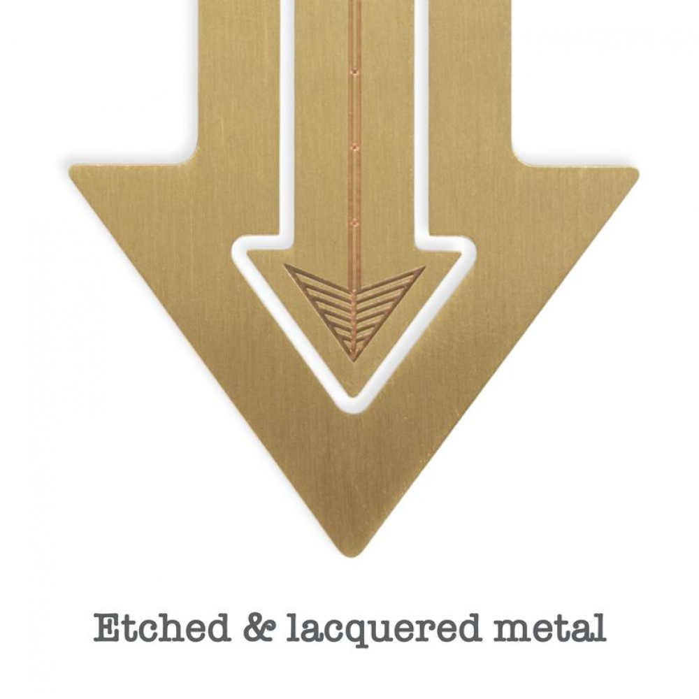 Keep your page in books and magazinesClips to both left and right pagesEtched arrow onto lacquered metalMatching foil detailed packagingAvailable in copper and brass