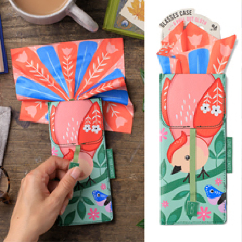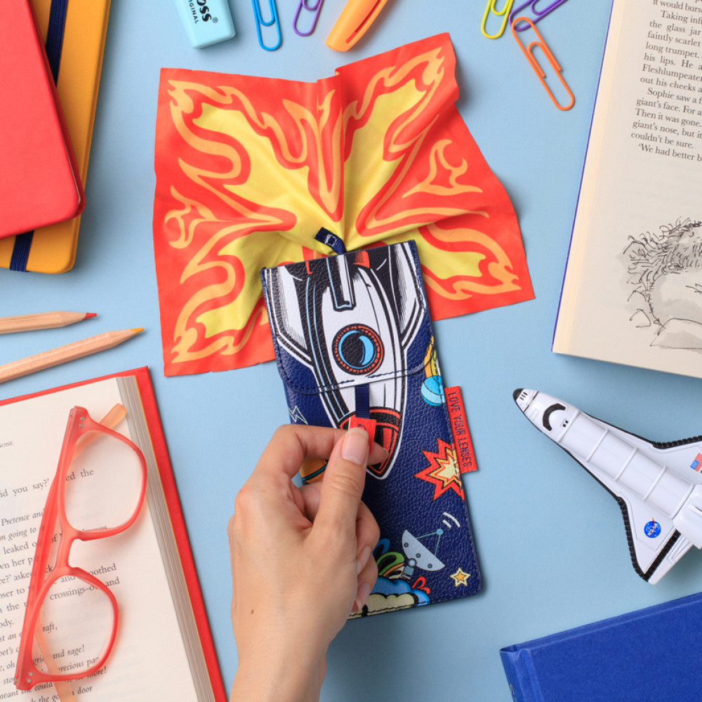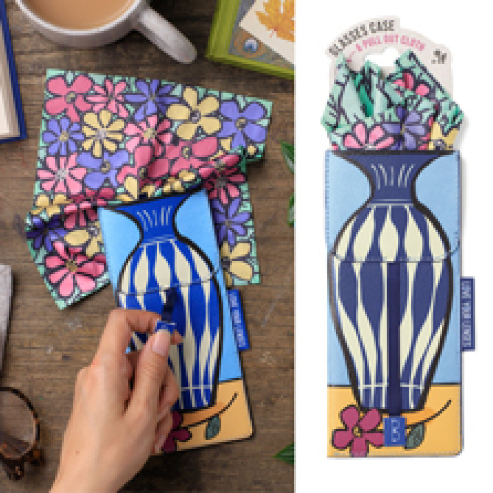 A handbag or desktop talking point, these completely unique, lined glasses sleeves each feature a bold and brilliant graphic image, ingeniously incorporating a printed microfibre cloth. Got a smudge? Remove your glasses from the sleeve, pull the cloth from its pocket and clean. Gently pull the ribbon and the cloth will slide back into place. With six very different designs to choose from they a special gift for absolutely anyone who wears glasses from age 5 to 95!