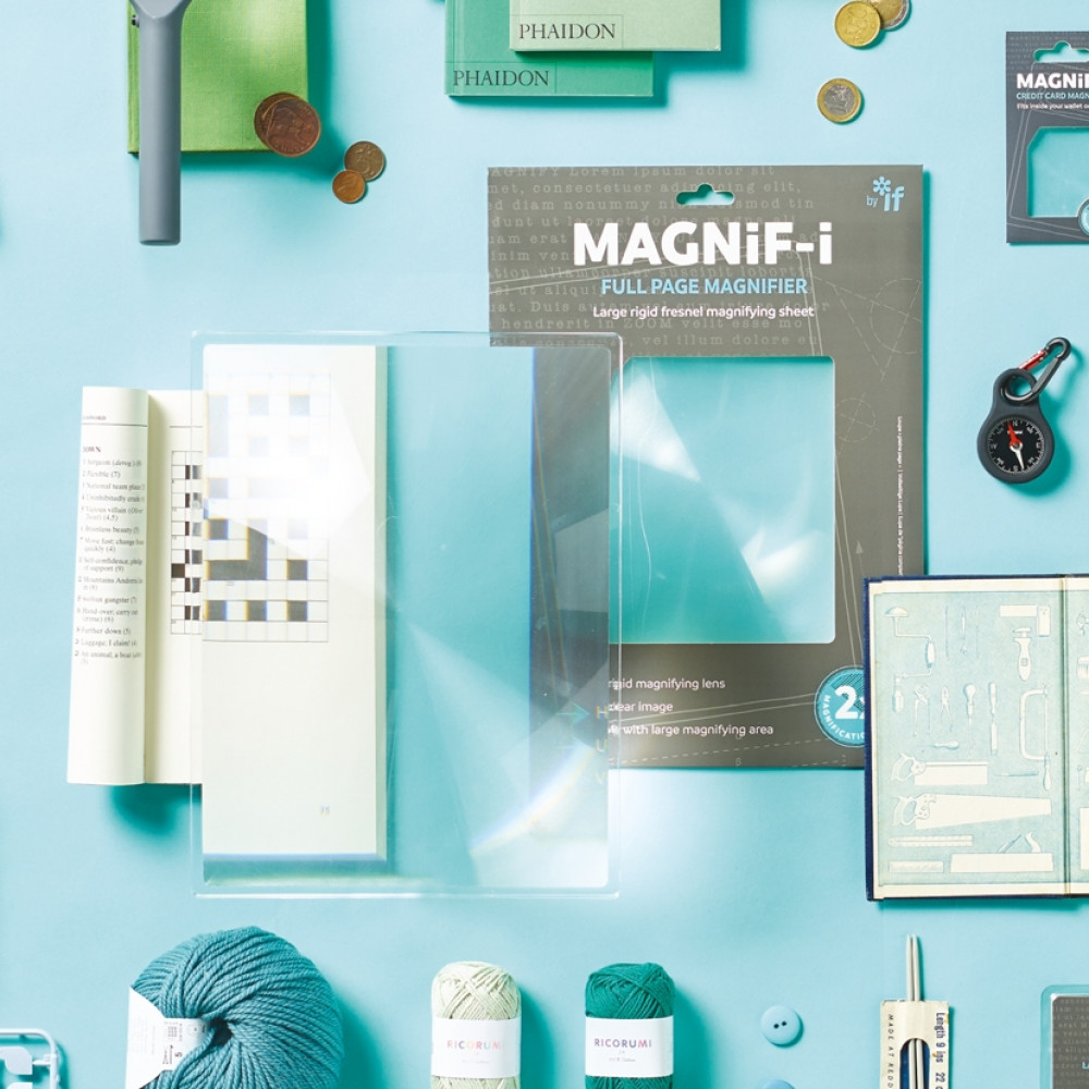 An extra large, good quality rigid magnifying sheet, designed for those needing to view larger areas with ease. Rigid acrylic construction allows the sheet to be held steadily with one hand. Extremely handy for viewing bigger books, maps, pictures, or any larger format subjects. Part of the MAGNIF-i range – a smart coordinated program of well-designed magnifying products for essential use.
