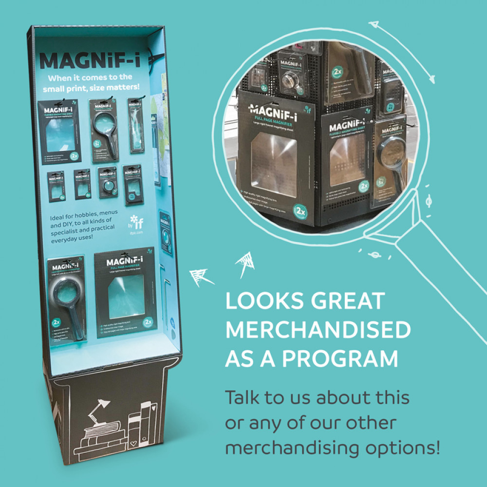With a comfort-hold handle and large lightweight lens, suitable for all types of household and hobby purposes where prolonged use might be required. With higher strength inset lens for tasks that need extra magnification. Ideal for older people, close-up work hobbies and tasks requiring prolonged use such as reading, jigsaws, and study. Part of the MAGNIF-i range – a smart coordinated program of well-designed magnifying products for essential use.