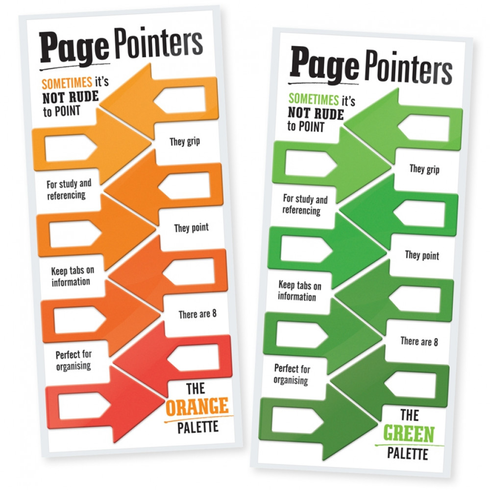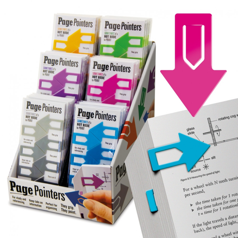 Coordinated shades of pointing arrows, perfect to mark important bits of info in books, magazines, and brochures to name but three. Ideal for studying too. Choose a set to match your mood or create a splash by mixing and matching. Each flexible arrow can be clipped on again and again. Sometimes it's not rude to point!