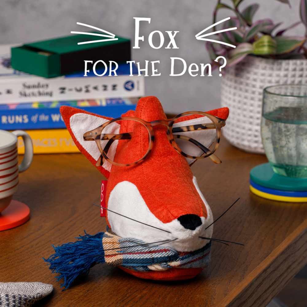 They wear your spectacles when you don’t!Cleverly designed, amusing places to store your glasses at homeHare for the Dresser? Fox for the Den? Mouse for the House?Created in lots of lovely fabrics designed to complement your home décorSlip the folded arms into the slot. Your frame will find its natural position on the animal's nose