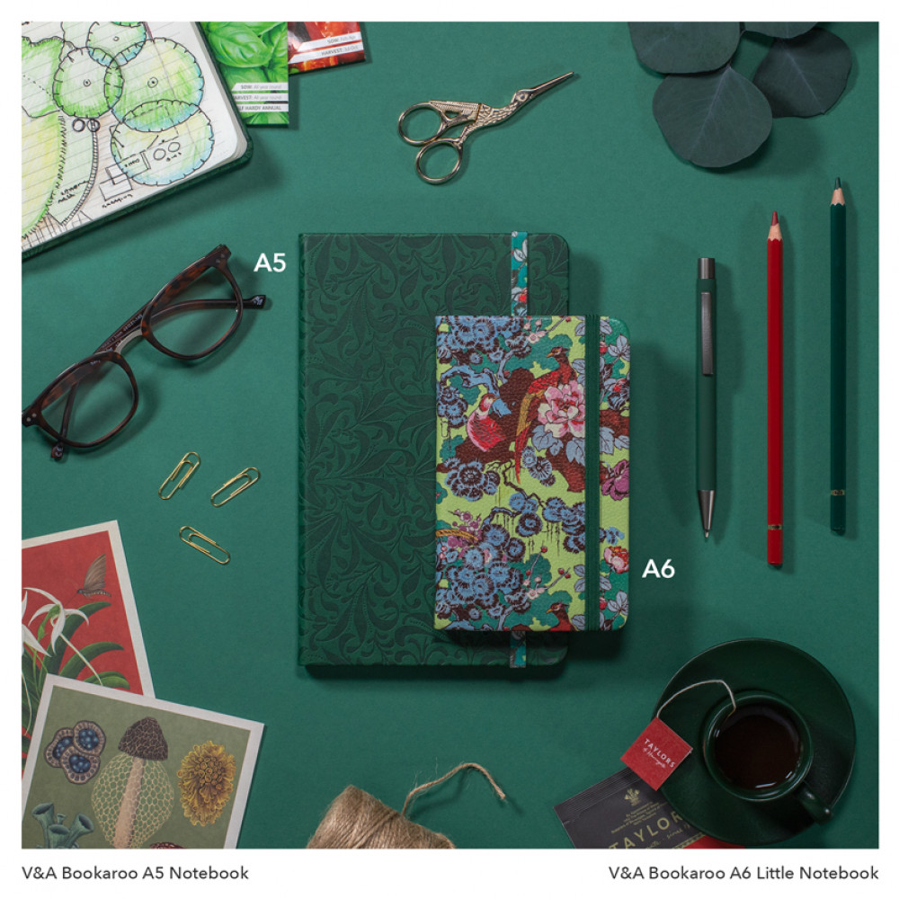 Working In collaboration with the V&A, we have carefully selected this Morton Sundour ‘Chinoiserie furnishing fabric’ design from the museum’s holdings of textile and wallpaper design due to its on-trend glorious green hues and beautiful bird motif. We have then skilfully applied this to six of our best-selling Bookaroo lifestyle and stationery products, creating a brand new delightful collection to enjoy.