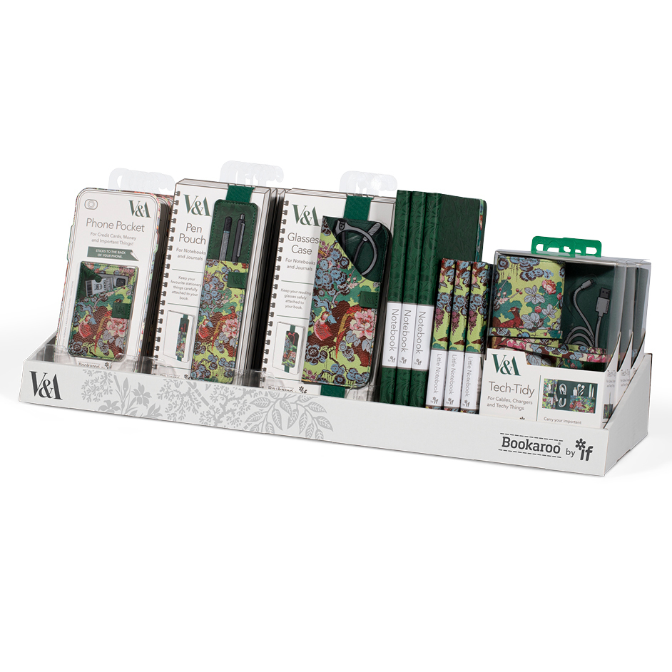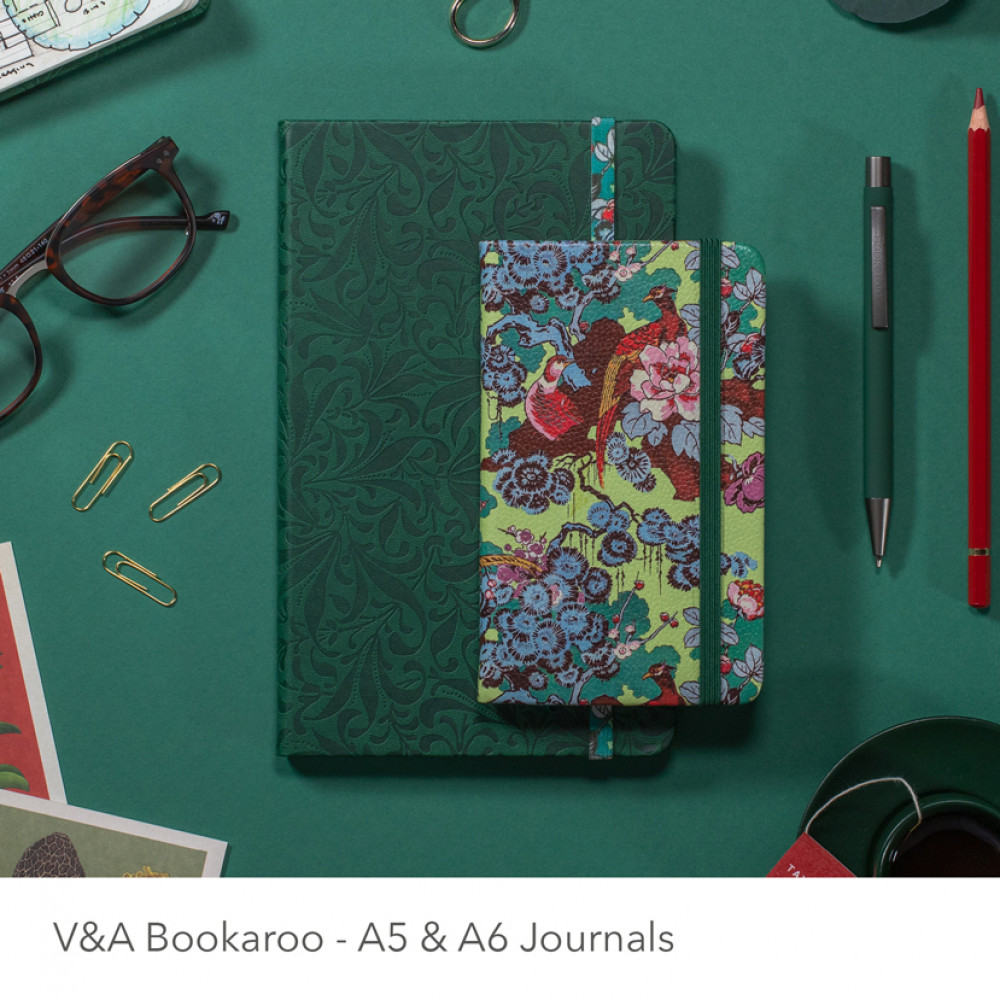 Working In collaboration with the V&A, we have carefully selected this Morton Sundour ‘Chinoiserie furnishing fabric’ design from the museum’s holdings of textile and wallpaper design due to its on-trend glorious green hues and beautiful bird motif. We have then skilfully applied this to six of our best-selling Bookaroo lifestyle and stationery products, creating a brand new delightful collection to enjoy.